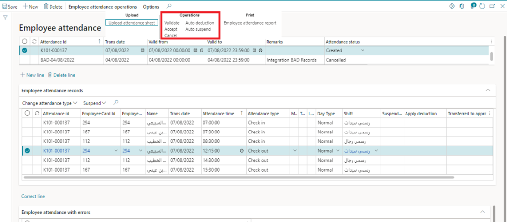 Employee Attendance Screen