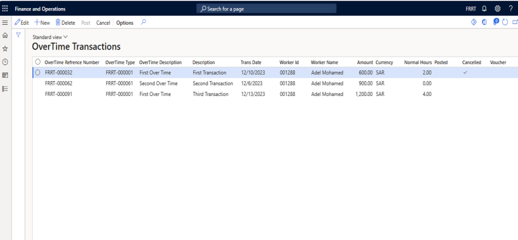 Overtime Transaction