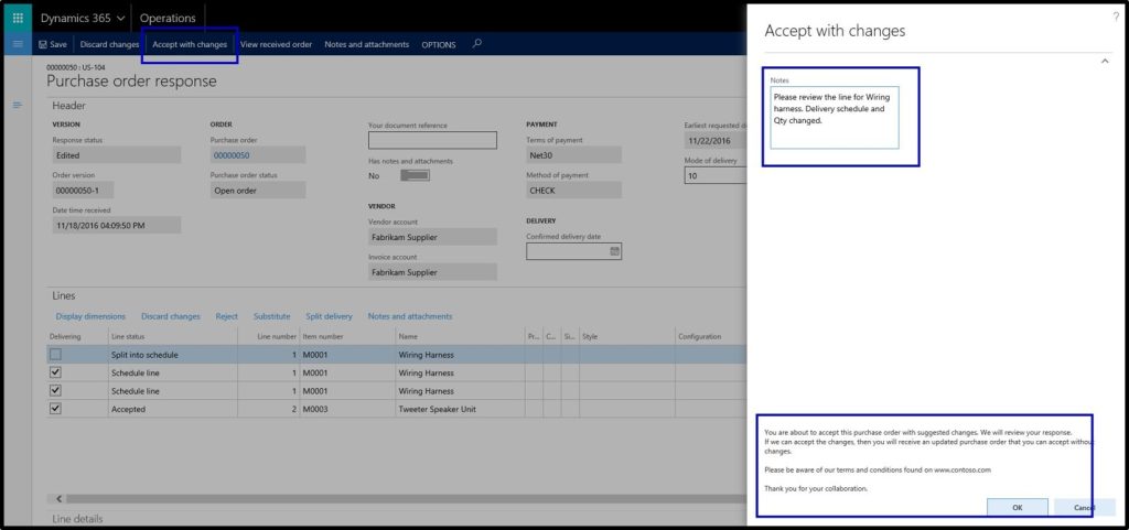 Purchase Order Split delivery & send suggestions for change in delivery dates for the PO