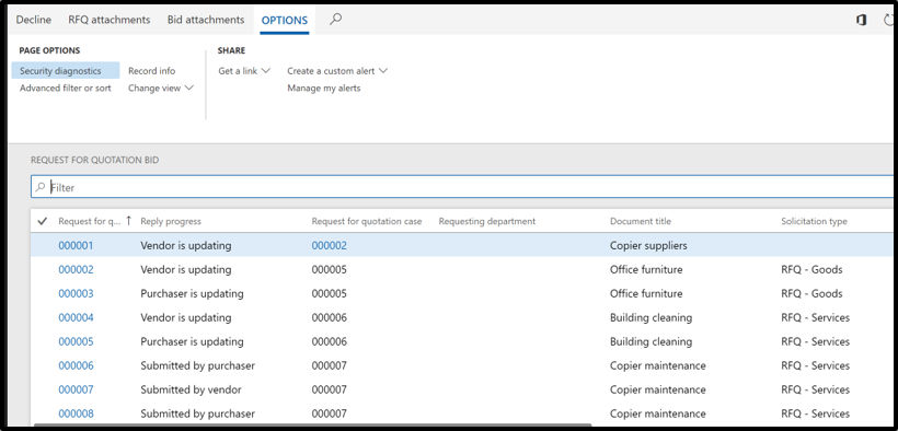 Accept, and Reject request for quotations (RFQs) and setting Price of the Bid